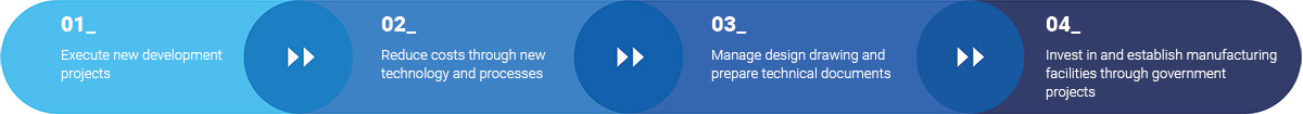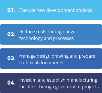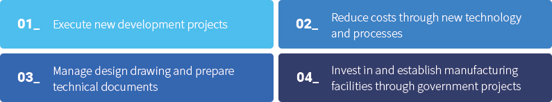 The R&D institute concentrates on R&Ds by performing domestic and overseas new development projects, satisfying customers through cost reduction based upon new technology and new engineering methods, managing design drawings, preparing technical documents, making investment in building production facilities through governmental projects, etc.